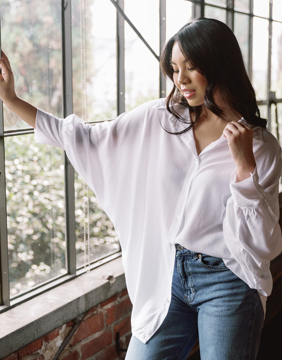 The Remi Shirt is a fresh take on the classic collared shirt, featuring a soft drape, graceful dolman sleeves, and endless styling possibilities. A timeless piece you’ll reach for again and again.