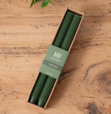 Timber Green Ribbed Taper Candle (Set of 2)